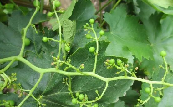 缺硼:新梢頂端卷須干枯,花序小、花蕾少,畸形花、落花多,果穗小,落果多。