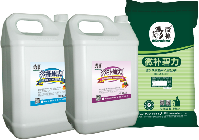 再連噴2次微補果力500倍+微補蓋力500倍+微補碧力1000倍微補果力補足磷鈣促膨大;微補蓋力連續(xù)噴,濃縮液體螯合鈣,增強細胞壁強度;微補碧力預防缺素黃葉,減少缺素落果。