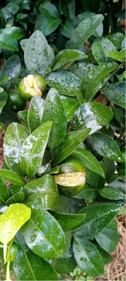 另外,預(yù)防裂果也要做好果樹栽培管理工作,雨季及時排水,干旱時少量多次及時淋水對減少裂果很重要;其次,掛果量要平衡,掛果量大而樹勢偏弱的果園也會出現(xiàn)大量裂果,因為果皮在發(fā)育過程中的需要的關(guān)鍵元素不能有效補(bǔ)充,正常的光合作用也受影響,裂果也就加重了。